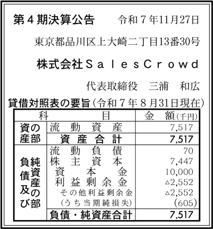 | 純利益 | ▲60万5,000円 (赤字縮小) |