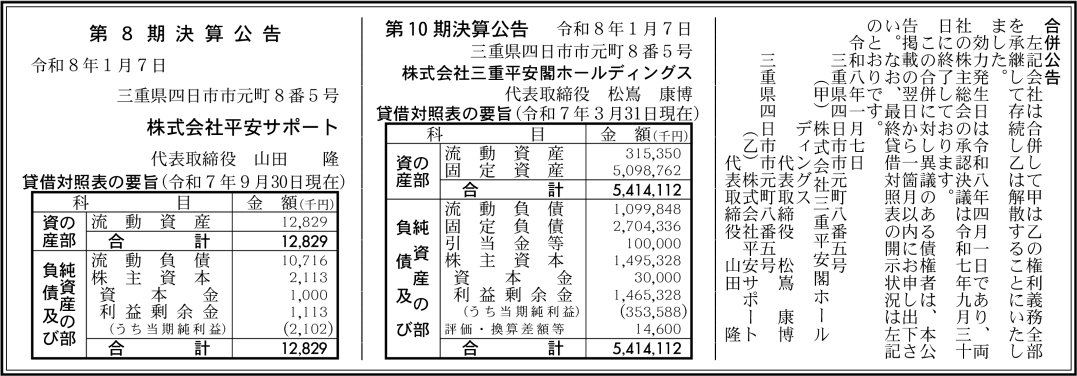 株式会社平安サポート 三重県四日市市 【2025年9月期】 |