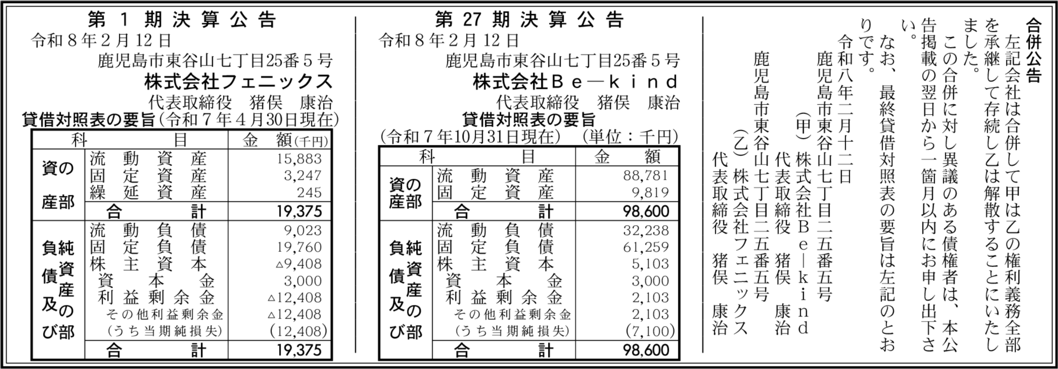 株式会社フェニックス 鹿児島市 【2025年4月期】 |