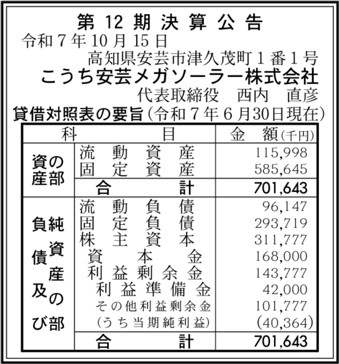 会社名 | こうち安芸メガソーラー株式会社 |