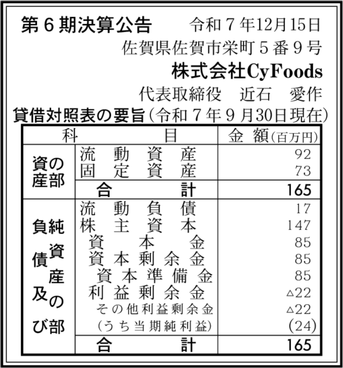 アグリジャパン株式会社 佐賀県佐賀市 【2025年7月期】 |