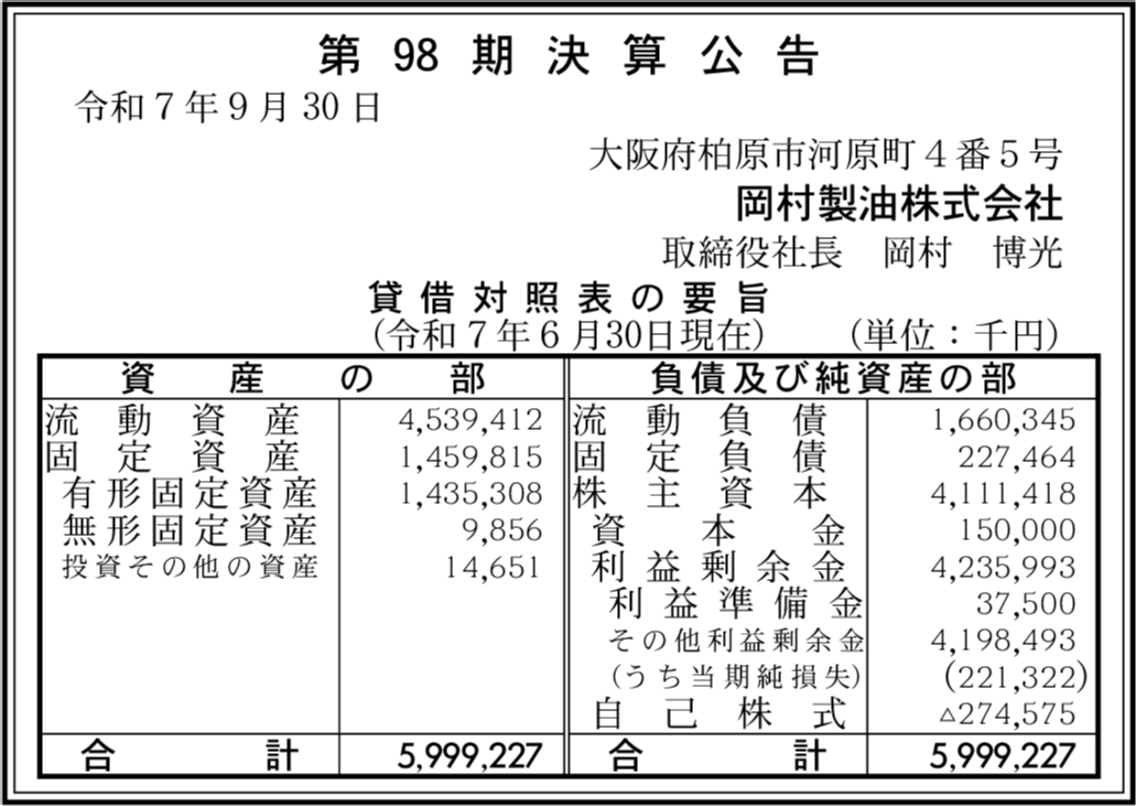 総資産 | 59億9,922万7,000円 (▲0.7%) |