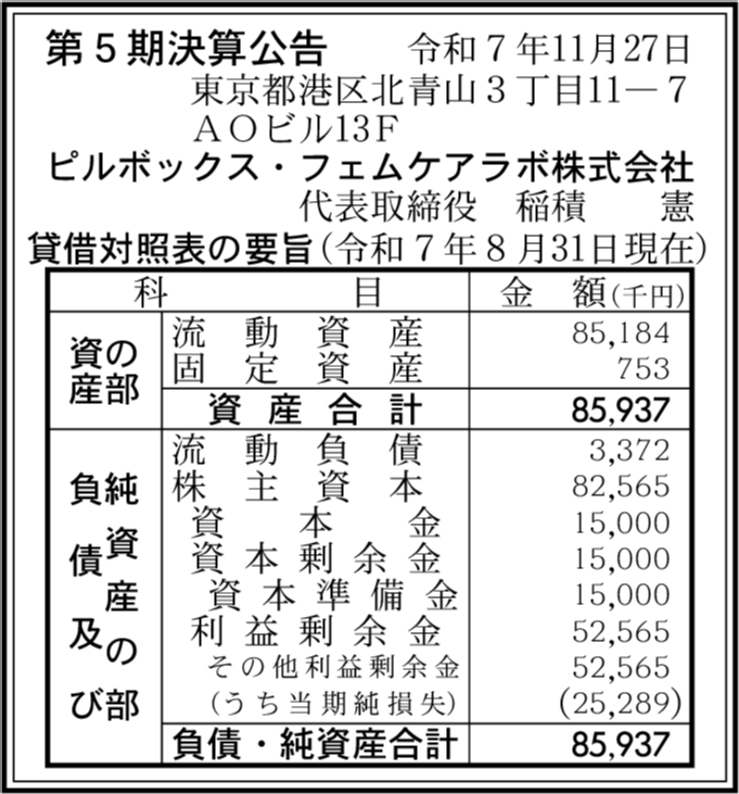 | 会社名 | ピルボックス・フェムケアラボ株式会社 |