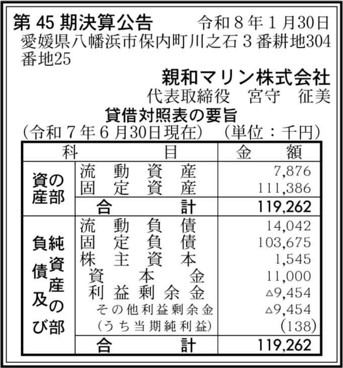 株式会社えひめフーズ 愛媛県八幡浜市 【2025年3月期】 |