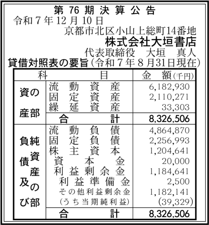 松本住宅合名会社 京都市北区 【2025年4月期】 |