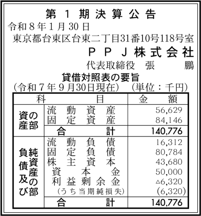 | 会社名 | PPJ株式会社 |