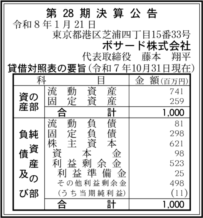 | 会社名 | ボサード株式会社 |
