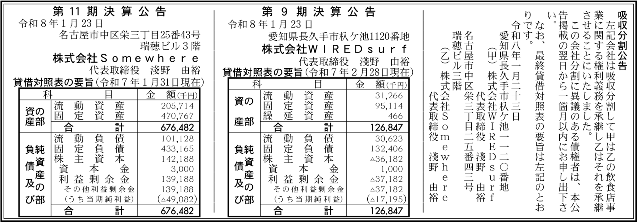 株式会社Somewhere 名古屋市中区 【2025年1月期】 |