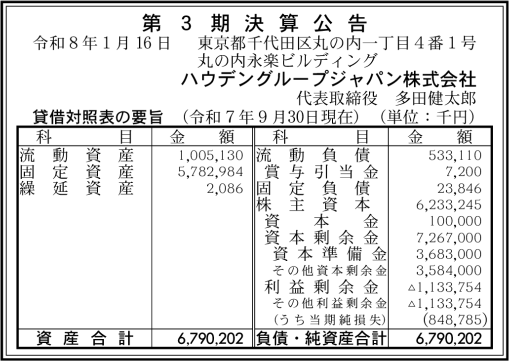 | 会社名 | ハウデングループジャパン株式会社 |