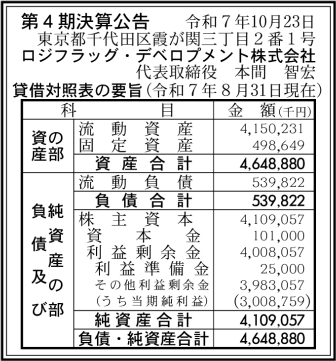 | 会社名 | ロジフラッグ・デベロプメント株式会社 |