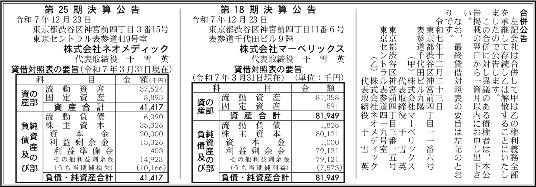 株式会社マーベリックス 東京都渋谷区 【2025年3月期】 |