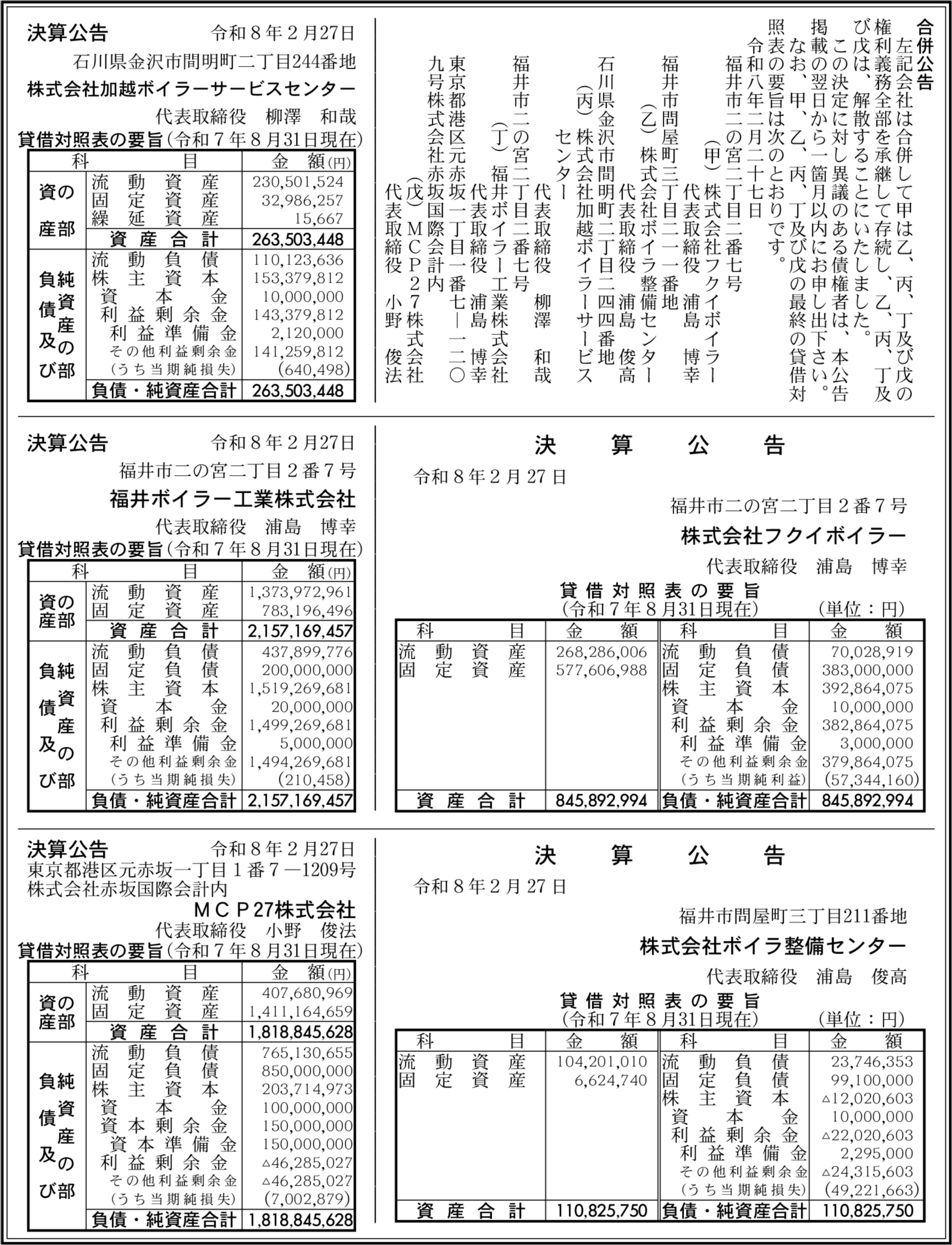 MCP3株式会社閉鎖済み 東京都港区 【2025年2月期】 |