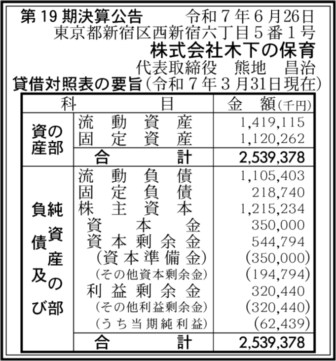 株式会社木下の介護 東京都新宿区 【2025年3月期】 |