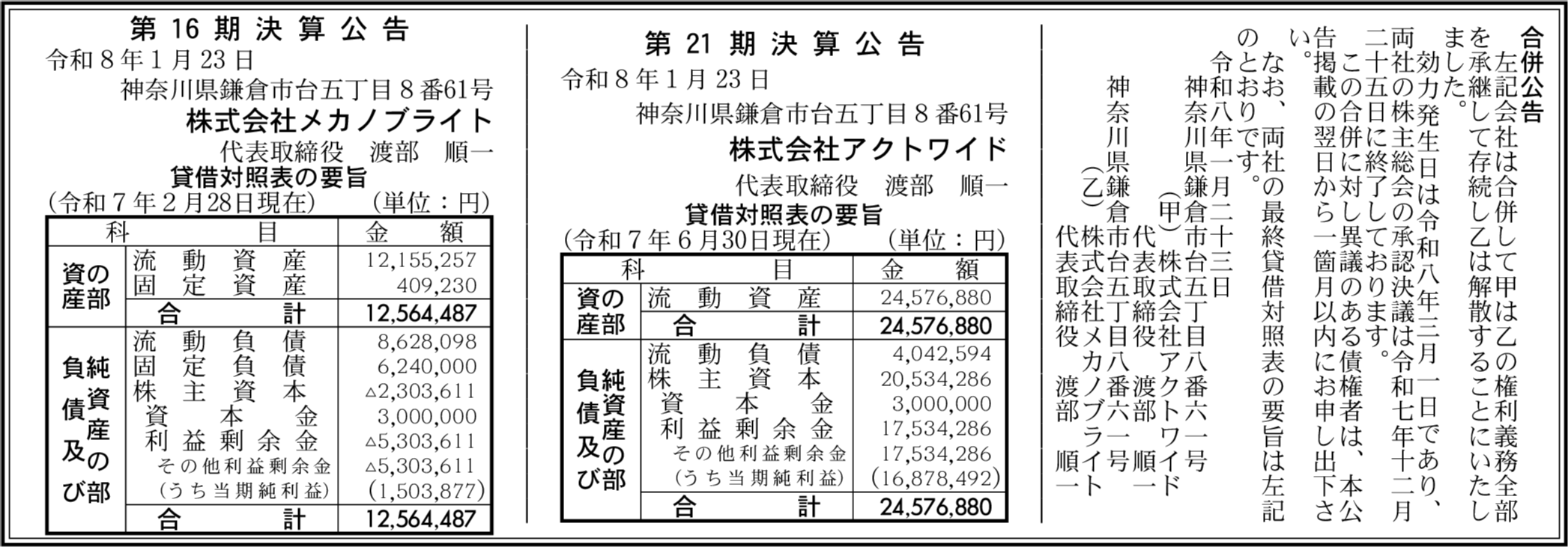 株式会社アクトワイド 神奈川県鎌倉市 【2025年6月期】 |