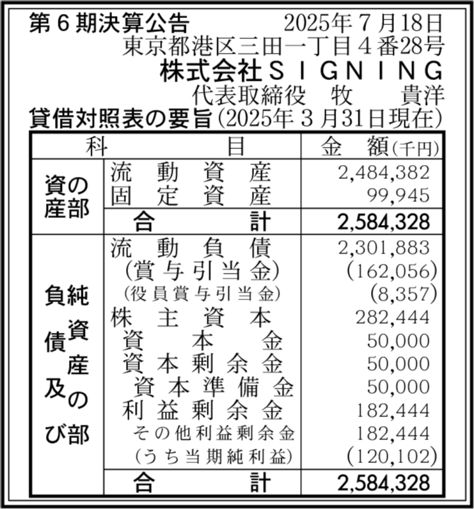 | 総資産 | 25億8,432万8,000円 (+87.09%) |