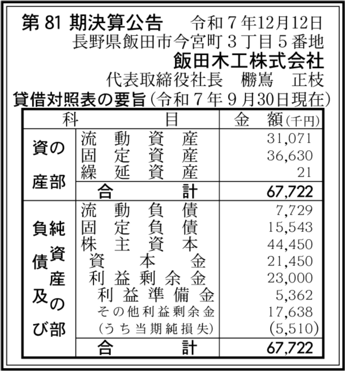 株式会社トキカネ 長野県飯田市 【2025年3月期】 |