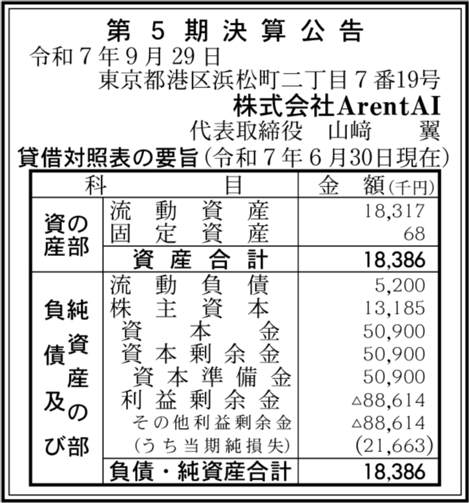 株式会社Arent 東京都港区 【2025年6月期】 |