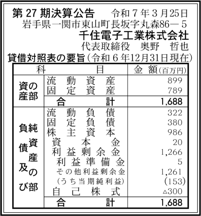 一関レミコン株式会社 岩手県一関市 【2025年3月期】 |