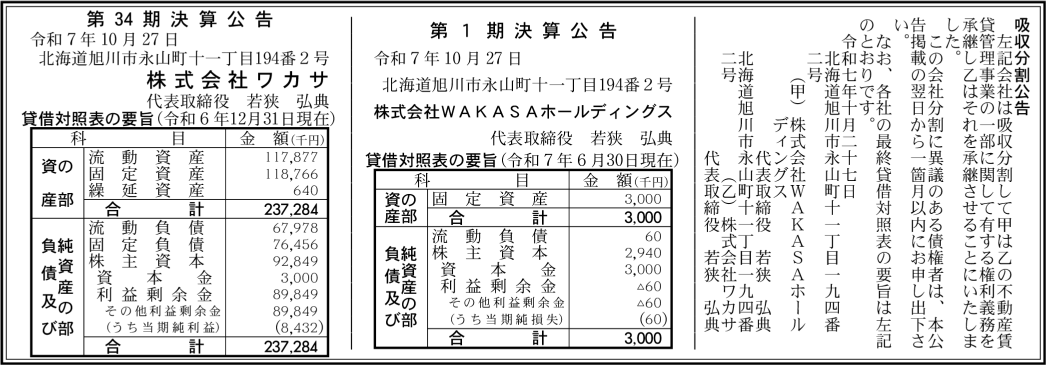 株式会社ワカサ 北海道旭川市 【2024年12月期】 |