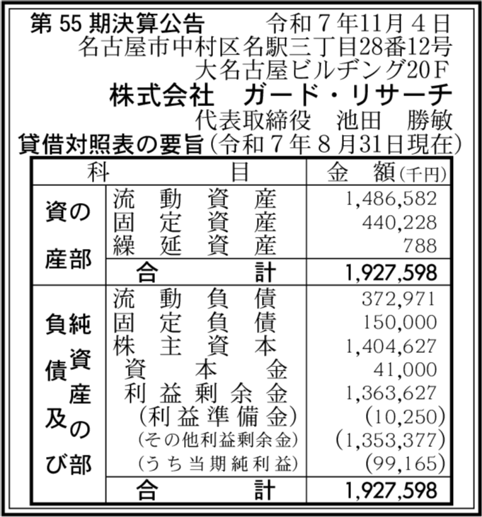 株式会社コプロコンストラクション 愛知県名古屋市中村区 【2025年3月期】 |