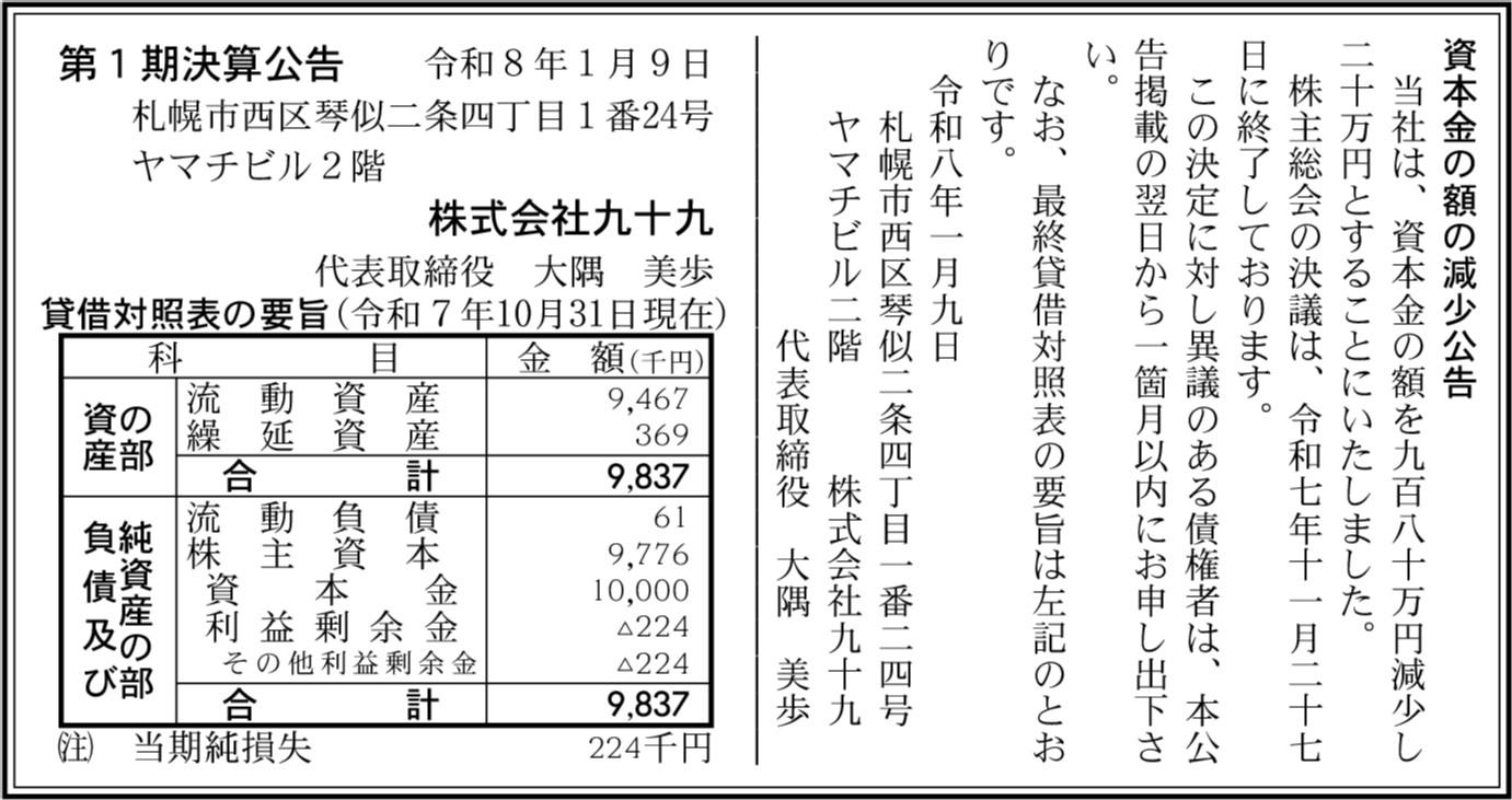 | 会社名 | 株式会社九十九 |