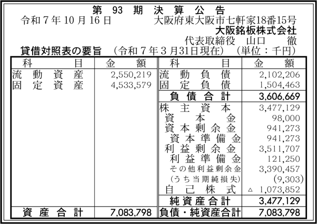 大銘プラスチック株式会社 大阪府東大阪市 【2025年3月期】 |