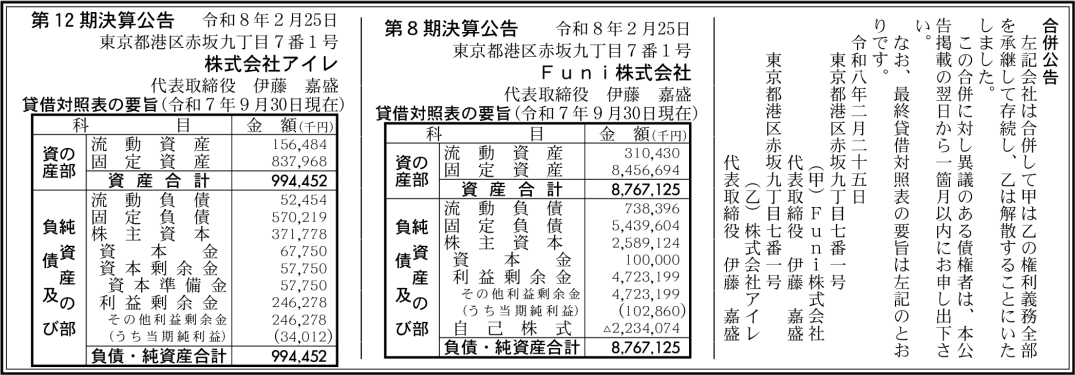 Funi株式会社 東京都港区 【2025年9月期】 |