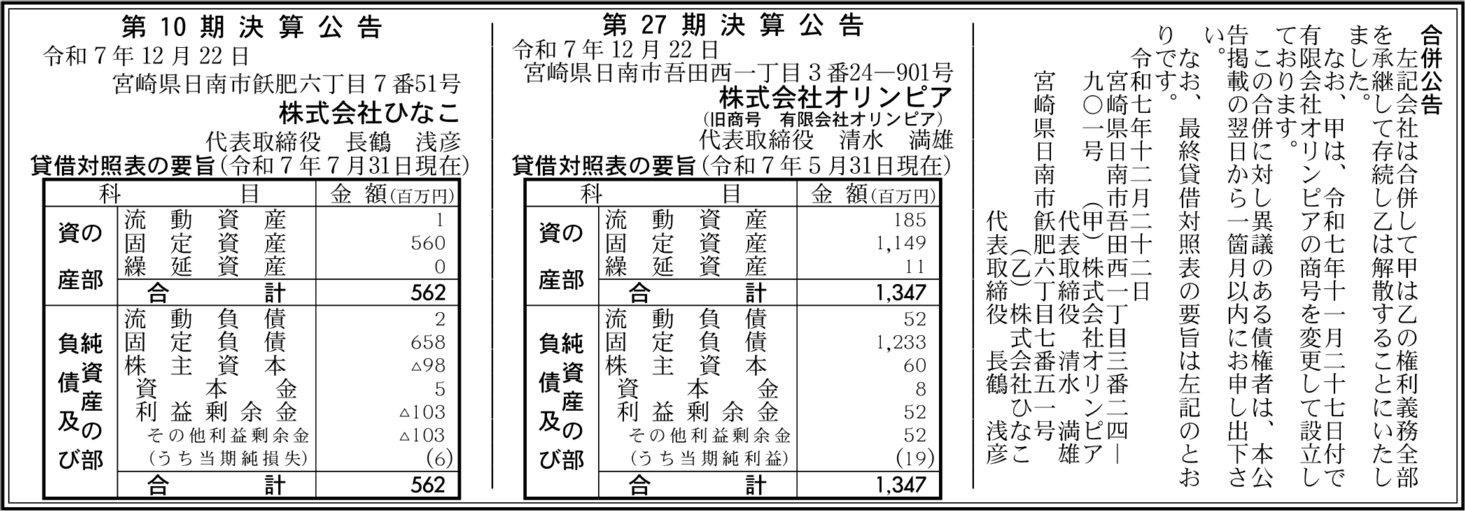 株式会社ひなこ 宮崎県日南市 【2025年7月期】 |