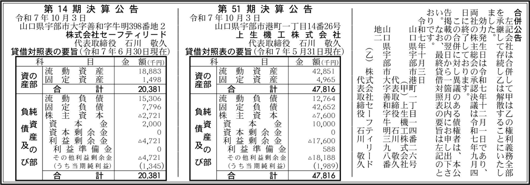 株式会社セーフティリード 山口県宇部市 【2025年6月期】 |