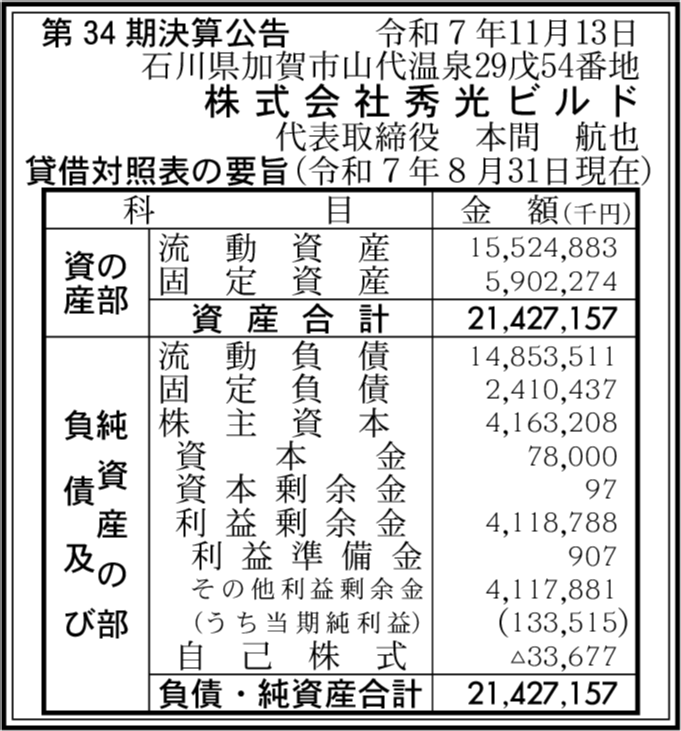 | 会社名 | 株式会社秀光ビルド |