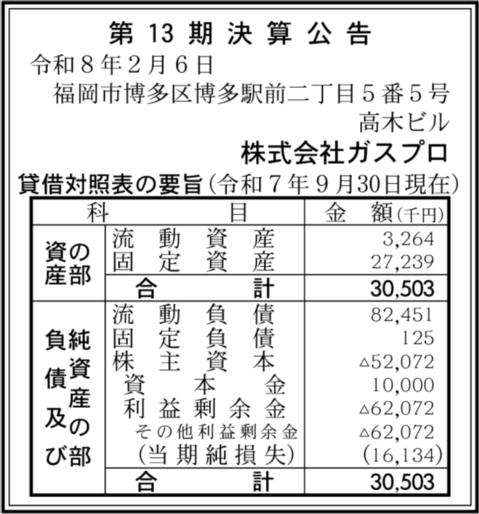 | 会社名 | 株式会社ガスプロ |