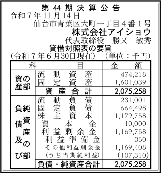 株式会社エーシーエス 宮城県仙台市青葉区 【2025年3月期】 |