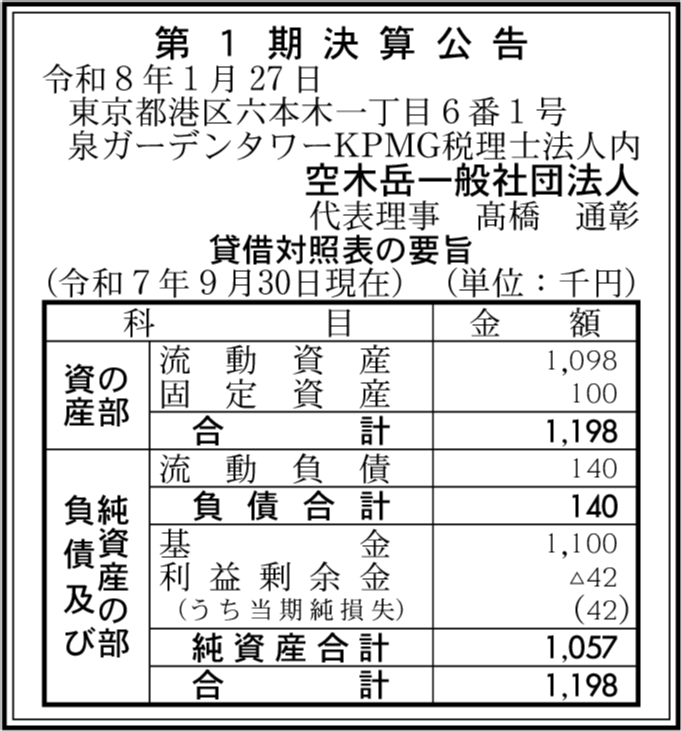 雲取山一般社団法人 東京都港区 【2025年9月期】 |