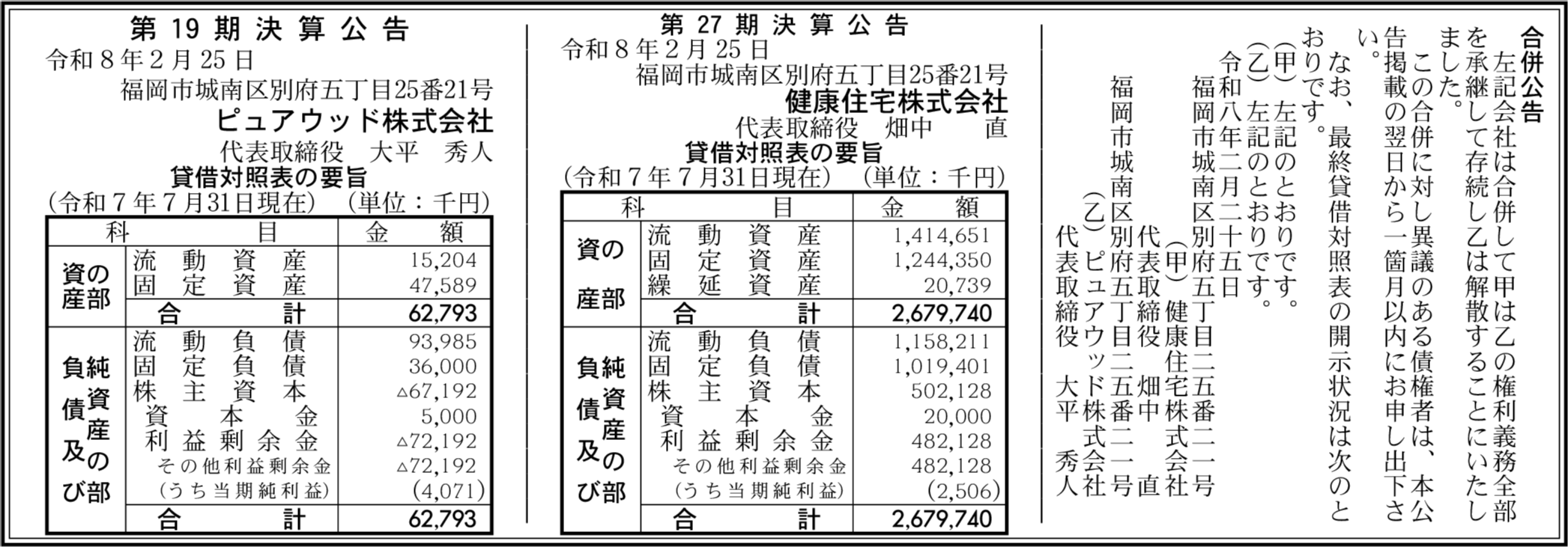 健康住宅株式会社 福岡市城南区 【2025年7月期】 |