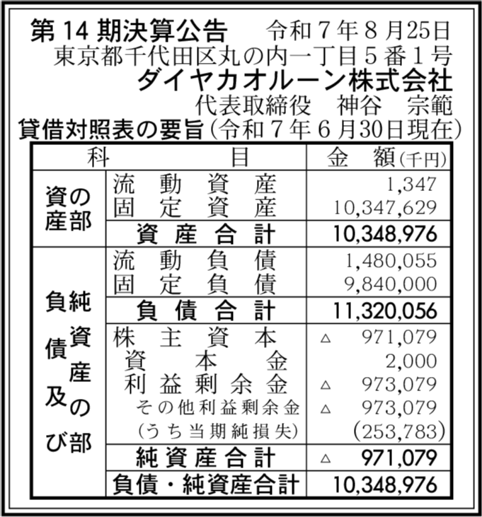 ダイヤシャンベルタン株式会社 東京都千代田区 【2025年3月期】 |