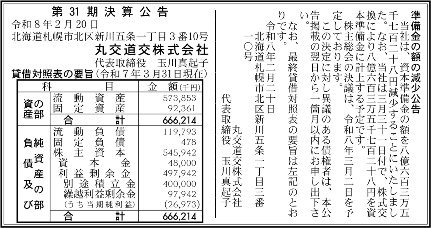株式会社丸輝 札幌市北区 【2025年7月期】 |
