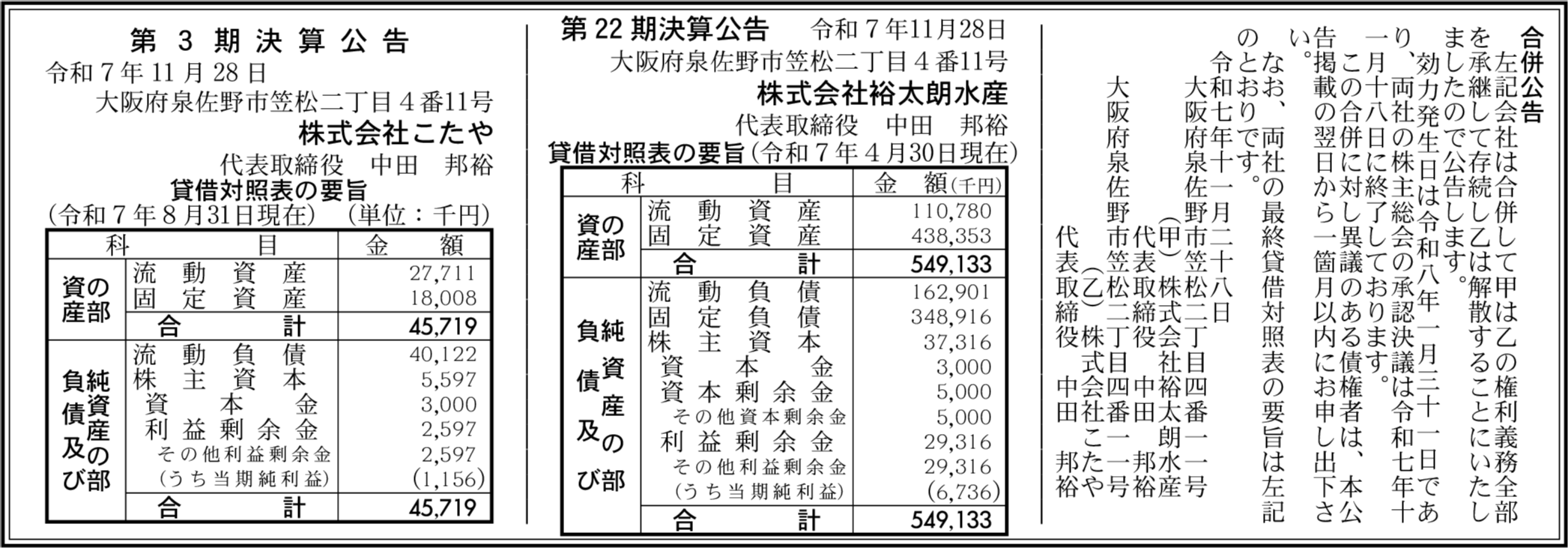 株式会社こたや 大阪府泉佐野市 【2025年8月期】 |
