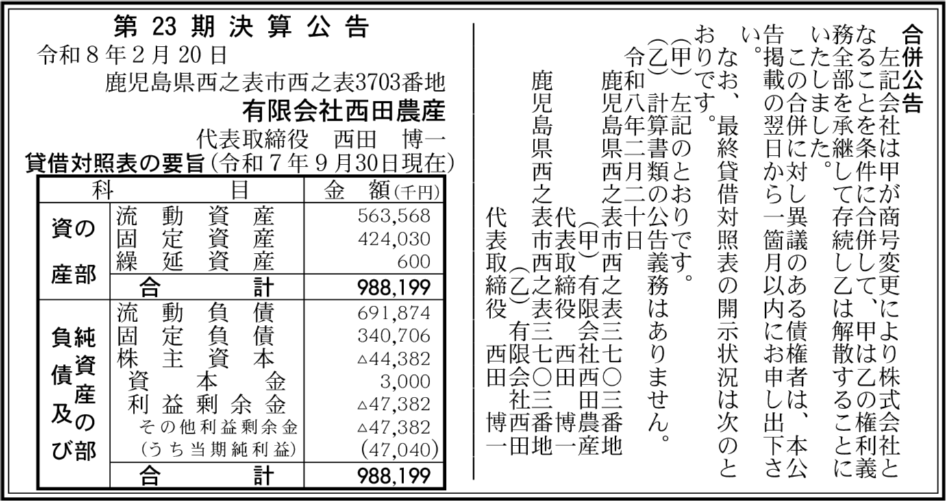 | 会社名 | 有限会社西田農産 |