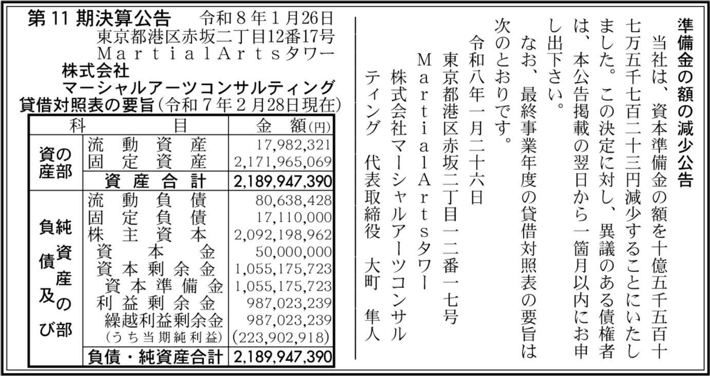 | 会社名 | 株式会社マーシャルアーツコンサルティング |