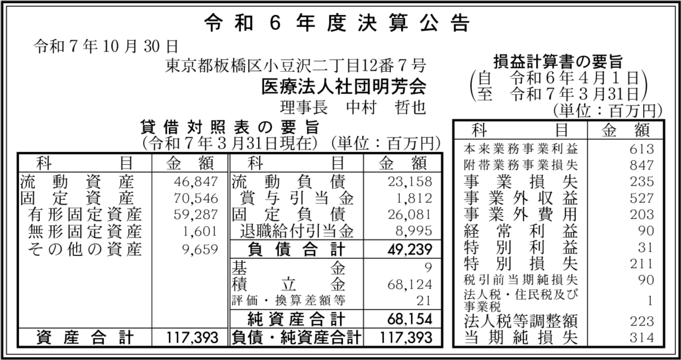医療法人財団明理会 東京都板橋区 【2025年3月期】 |