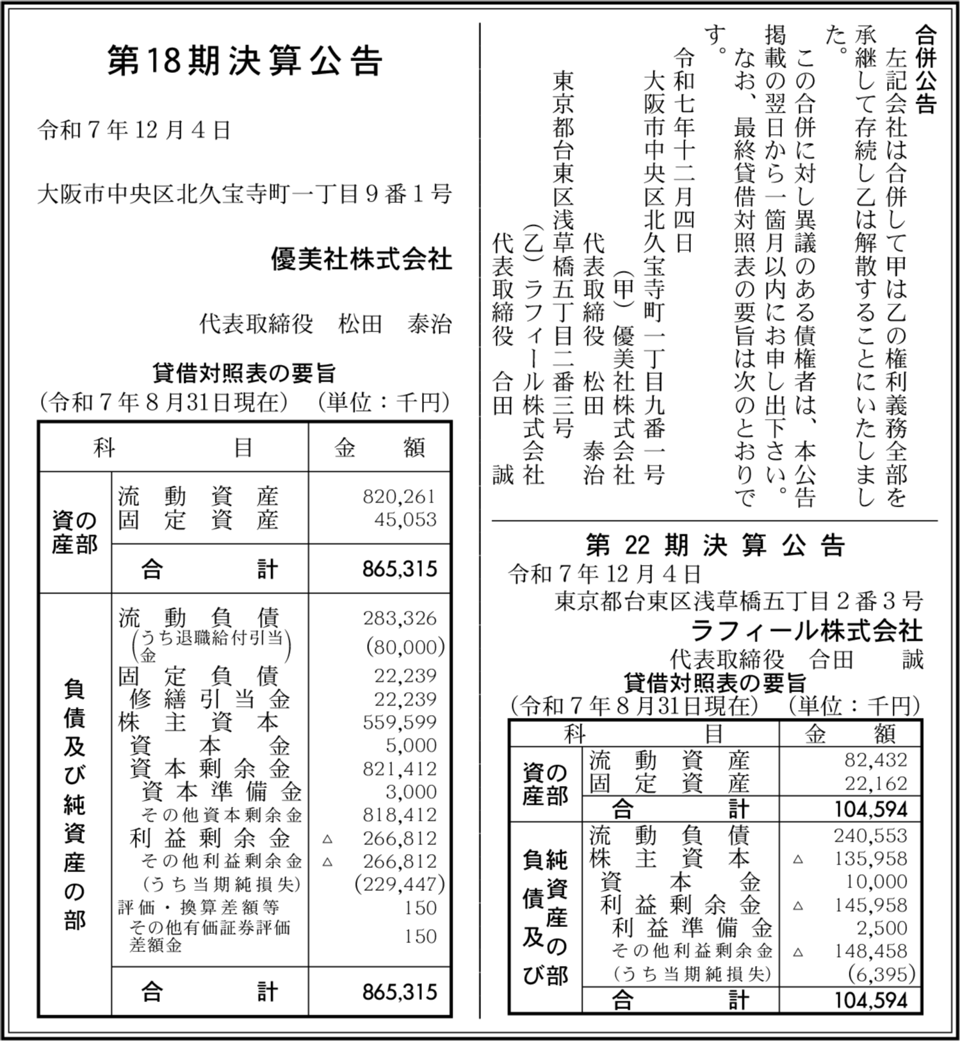 株式会社アール 東京都台東区 【2025年7月期】 |
