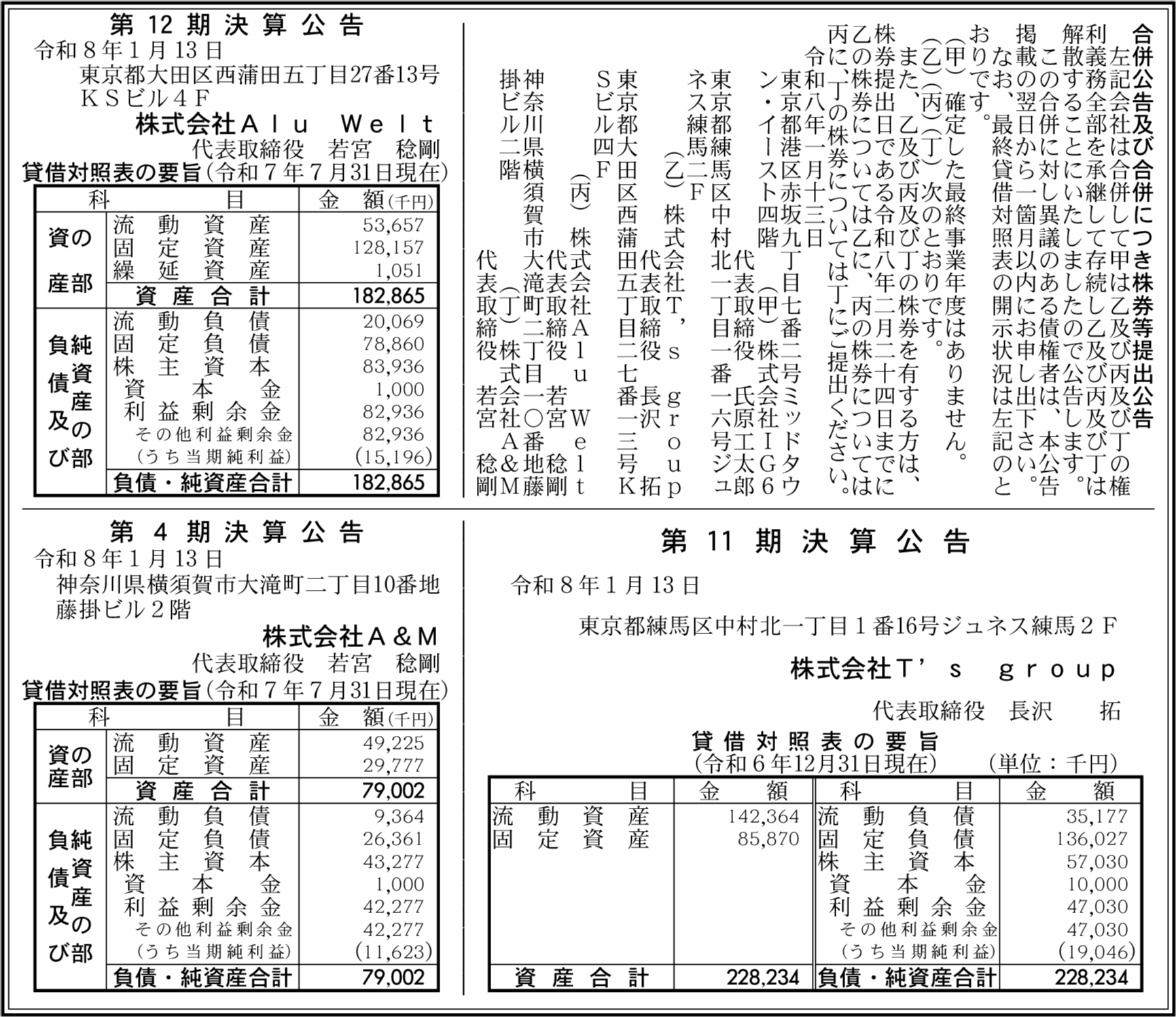 株式会社Alu Welt 東京都大田区 【2025年7月期】 |