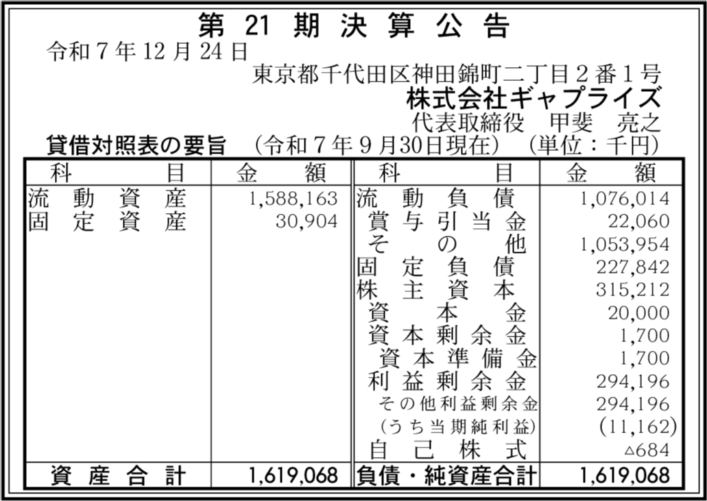 | 利益剰余金 | 2億9,419万6,000円 (+3.94%) |