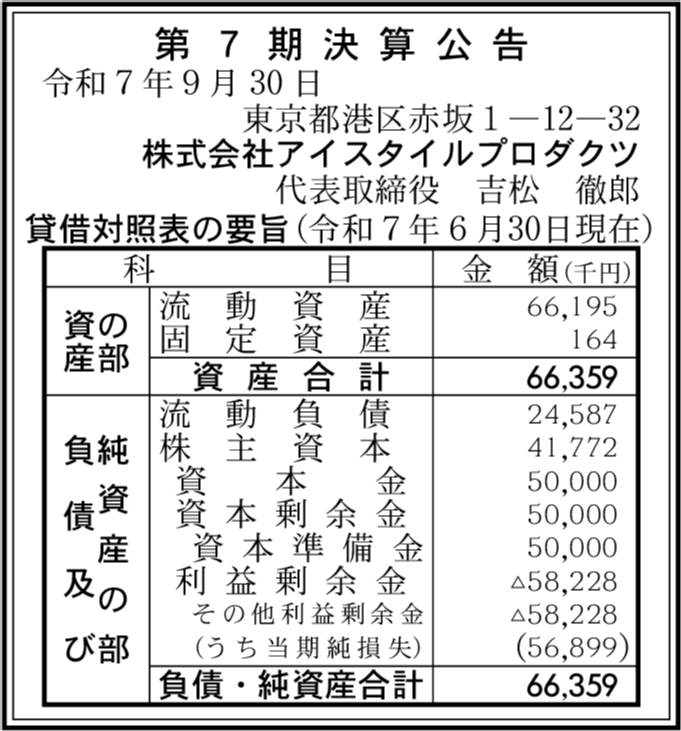 株式会社アイスタイルリテール 東京都港区 【2025年6月期】 |