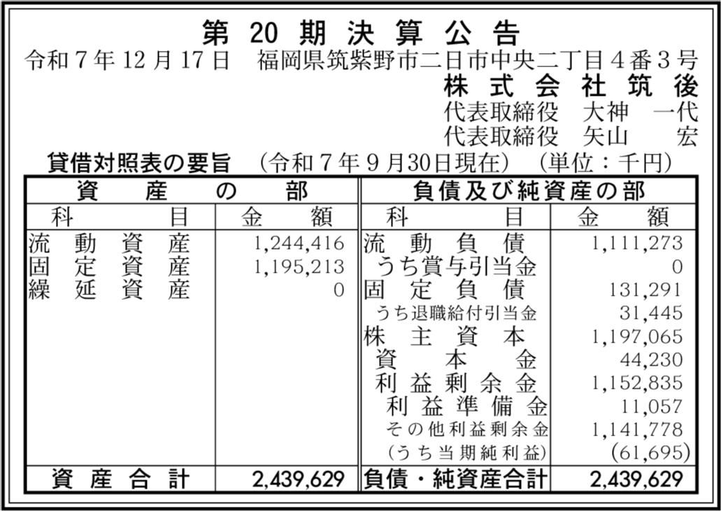 | 会社名 | 株式会社筑後 |