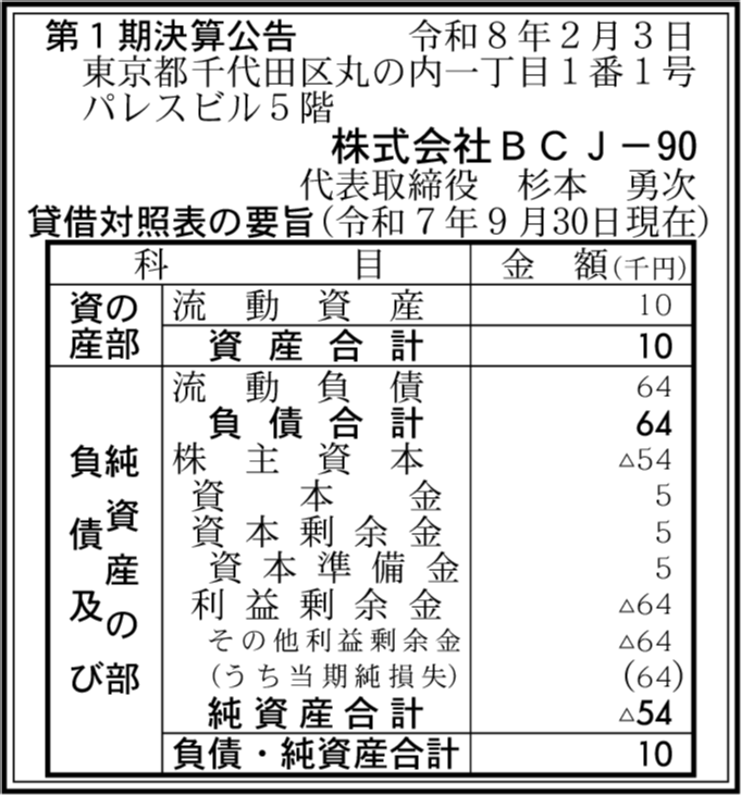 株式会社BCJ‐89 東京都千代田区 【2025年9月期】 |