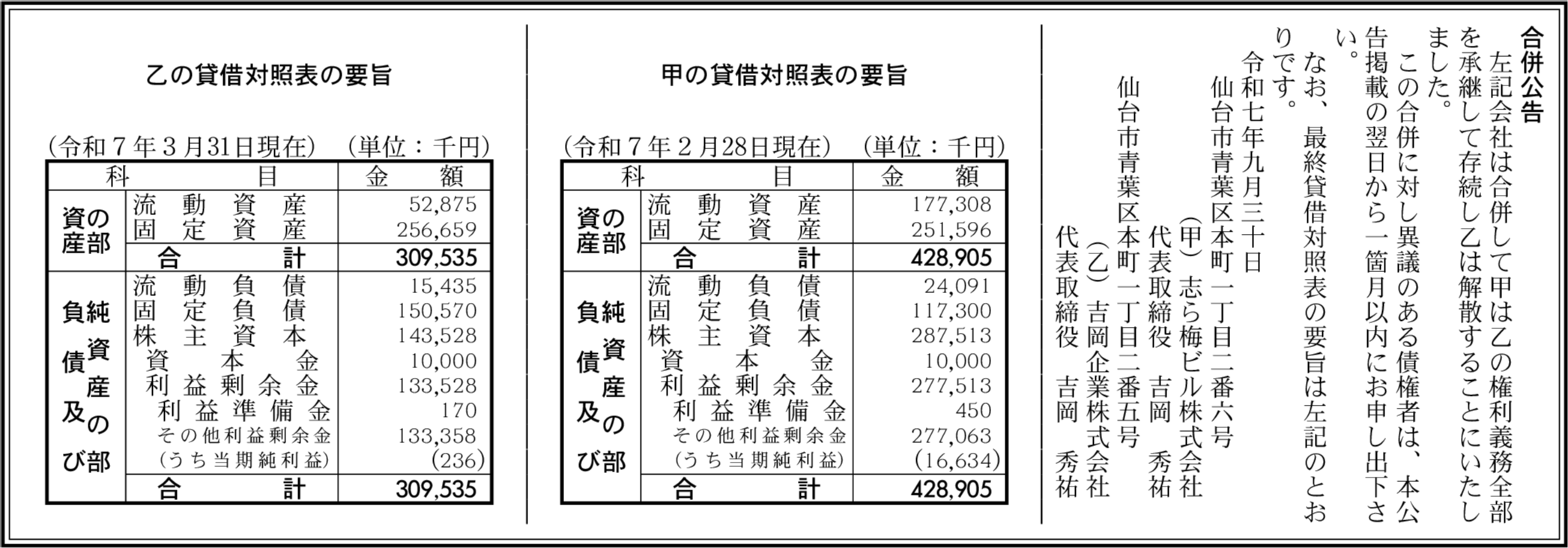 志ら梅ビル株式会社 仙台市青葉区 【2025年2月期】 |