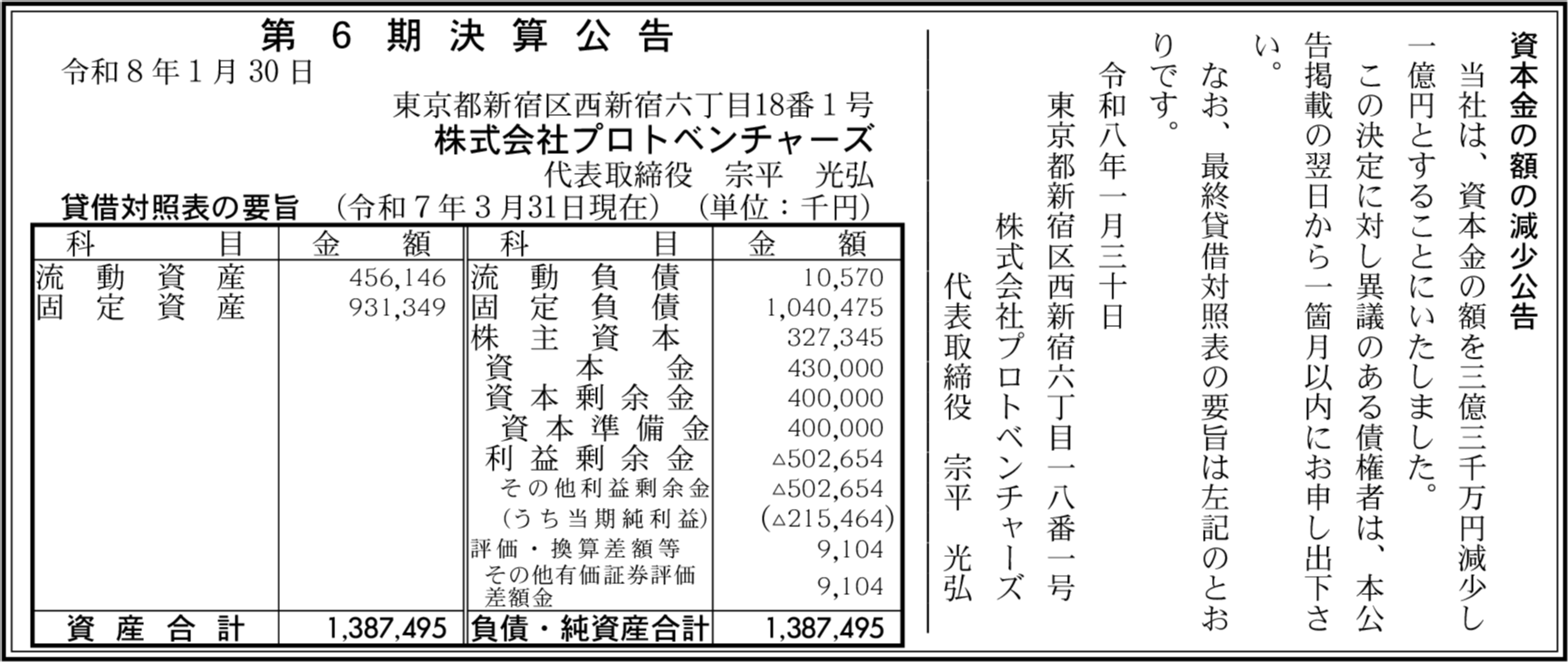 | 総資産 | 13億8,749万5,000円 |