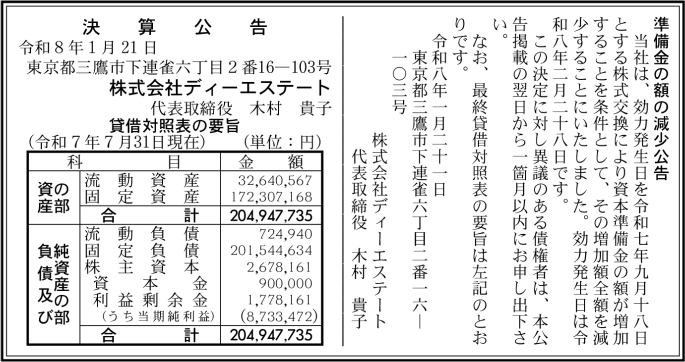 | 会社名 | 株式会社ディーエステート |