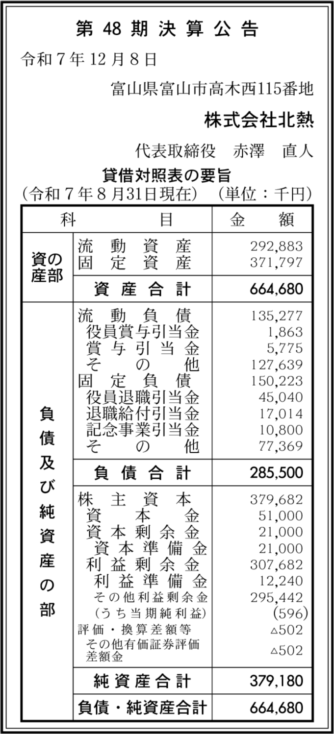 | 会社名 | 株式会社北熱 |
